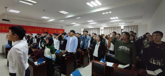 在工科楼119隆重举行2020-2021学年第一期“学四史 践初心 担使命”“青马工程”培训班开班仪式。校团委书记韩志、学院党委书记芦茜、党委副书记、纪委书记朱柏军、学工办全体成员、学院首期“青马工程”培训班全体学员等共计100余人参加本次开班仪式,仪式由学院团委负责人刘芷含老师主持。