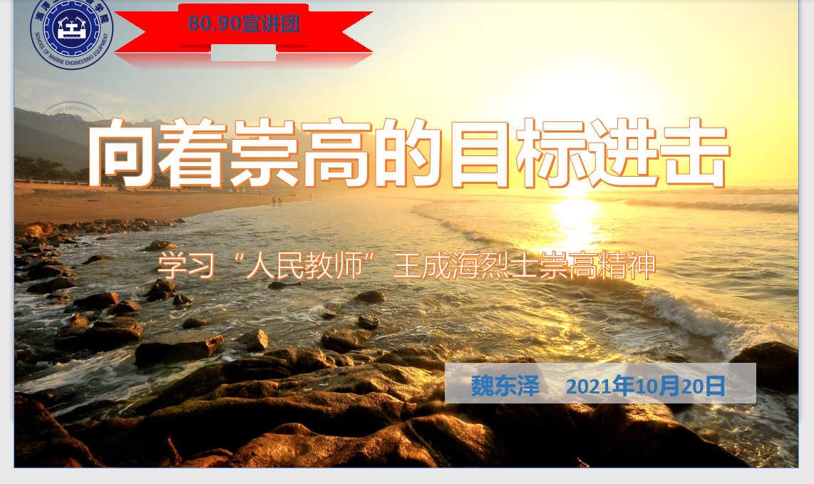 魏老师在报告中指出,今年恰逢王成海烈士牺牲30周年,我们深刻缅怀王成海烈士,更要汲取“成海精神”所蕴含的热爱祖国、献身事业的爱国精神;勤奋好学、求真务实的学术精神;勇于拼搏、艰苦奋斗的海洋精神和自强不息、勇于争先、无私奉献、舍己为人高尚品格,并化为学校建设与发展的重要力量,实现王成海校友未完的心愿,为建设特色鲜明、国内一流的浙江海洋大学而努力奋斗。