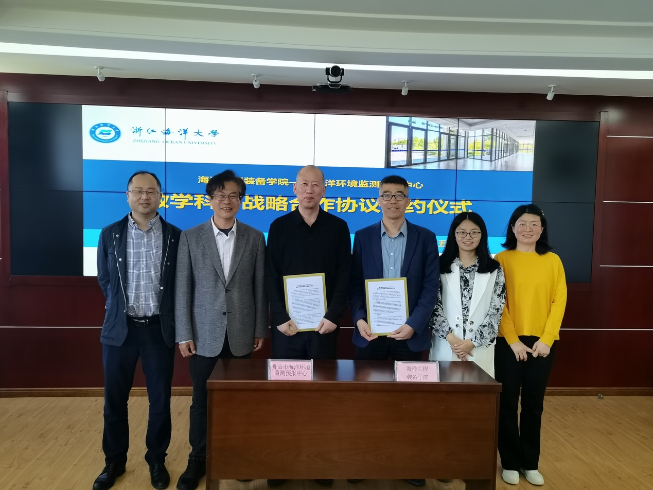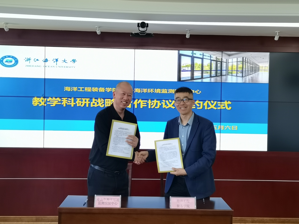 赵西增院长与舟山市海洋环境监测预报中心柳涛站长签订了“教学科研战略合作基地协议”。