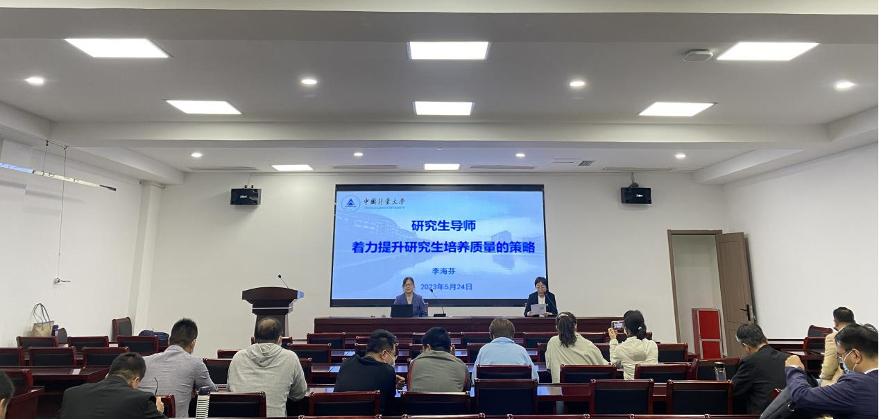 邀请,中国计量大学研究生院副院长李海芬教授来院作题为“研究生导师着力提升研究生培养质量”的专题报告。学院副院长李振华教授主持报告会,全体研究生导师、各学位点秘书、研究生秘书等参加会议并聆听专家报告。