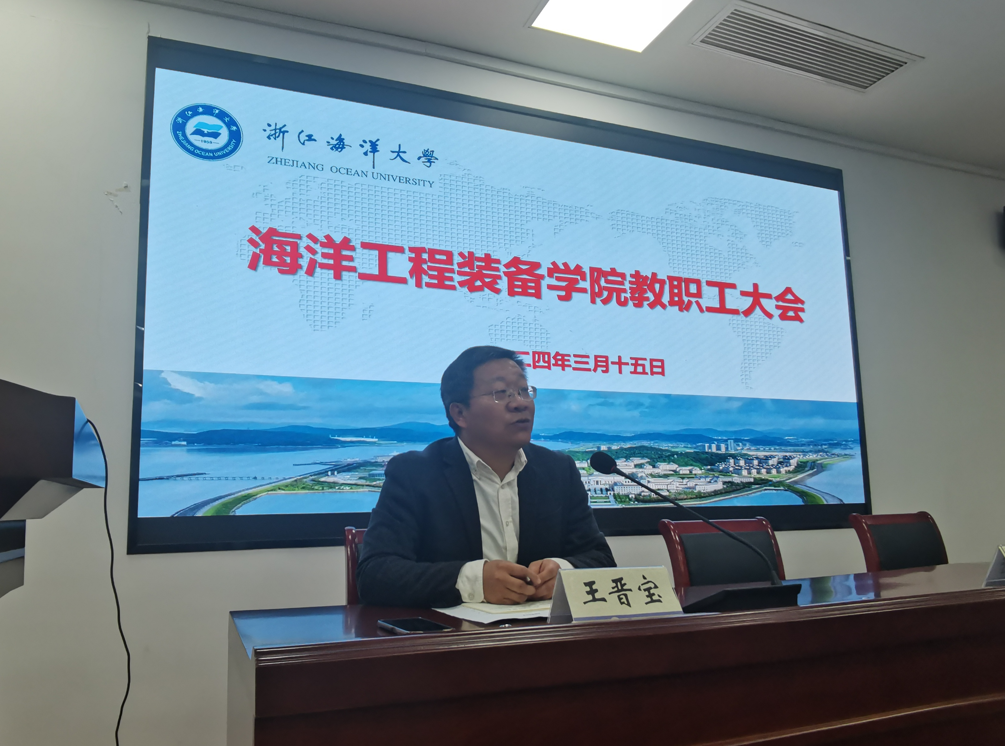 大会第一阶段,学校校长武传宇、组织部部长韩涛出席会议。韩涛部长宣布了王晋宝教授担任海工学院院长、党委副书记的任命文件。王院长作表态发言,他首先感谢学校的信任与重托,表示一定提高政治站位,与领导班子同心同德,快速凝练学院发展的优势特色和主攻方向,加强“有组织的科研”和团队建设,在全院教职工的大力支持与共同努力下,引领学院事业高水平提升发展。
