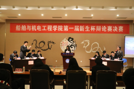 11月25日晚,船舶与机电工程学院第一届新生杯辩论赛决赛在杨存国二号报告厅举行。