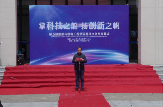 4月12日中午,船舶与机电工程学院第五届校园科技文化月开幕式在杨存国一号厅门前举行。院党委书记冯相忠,副院长陈正寿,各社团指导老师及社团负责人出席了本次开幕式。