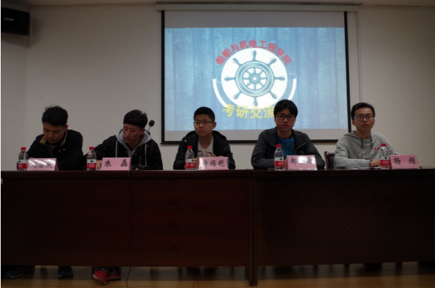 4月14日晚,船舶与机电工程学院在工科楼119举行考研交流会。本次交流会邀请了郑越洲、朱磊、许炀垲等五位成功考入985、211院校的同学们分享考研经验和心路历程,交流会由团学学习部副部长张雨晨主持。