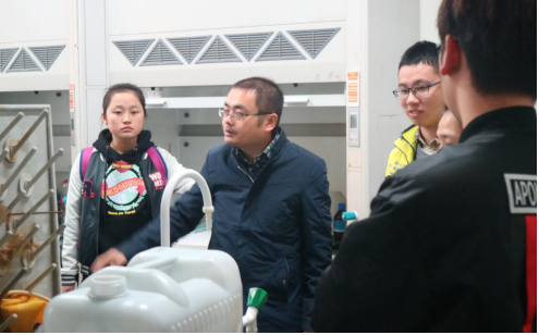 学生党员参观海洋水资源利用相关的仪器和设备,同时详细介绍了各种仪器的原理以及用法,让第一会所