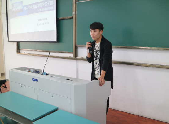 本次课程的内容分为学生干部必备素养和学生干部必备技能两块内容。在必备素养方面,顾军正指出,作为一名优秀的学生干部,要发挥好带头作用,要积极作为,带头坚定信念、带头刻苦学习,带头弘扬新风,随后顾军正对学生干部必备技能这一块做了详细的讲解,并给出自己在工作上的经验。在课程中顾军正还分享了他在校辩论赛的经历,与听课的众人展示并详细讲解了他准备的材料。