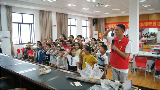 在船模制作活动中,志愿者耐心地为小朋友讲解着每个零件在船体上的作用并帮助他们把这些零件组装起来。通过船模志愿服务活动,不仅让家长和学生了解知识、锻炼耐心,提高动手能力,同时也让参与者和志愿者再次感受红船精神的时代价值和意义。