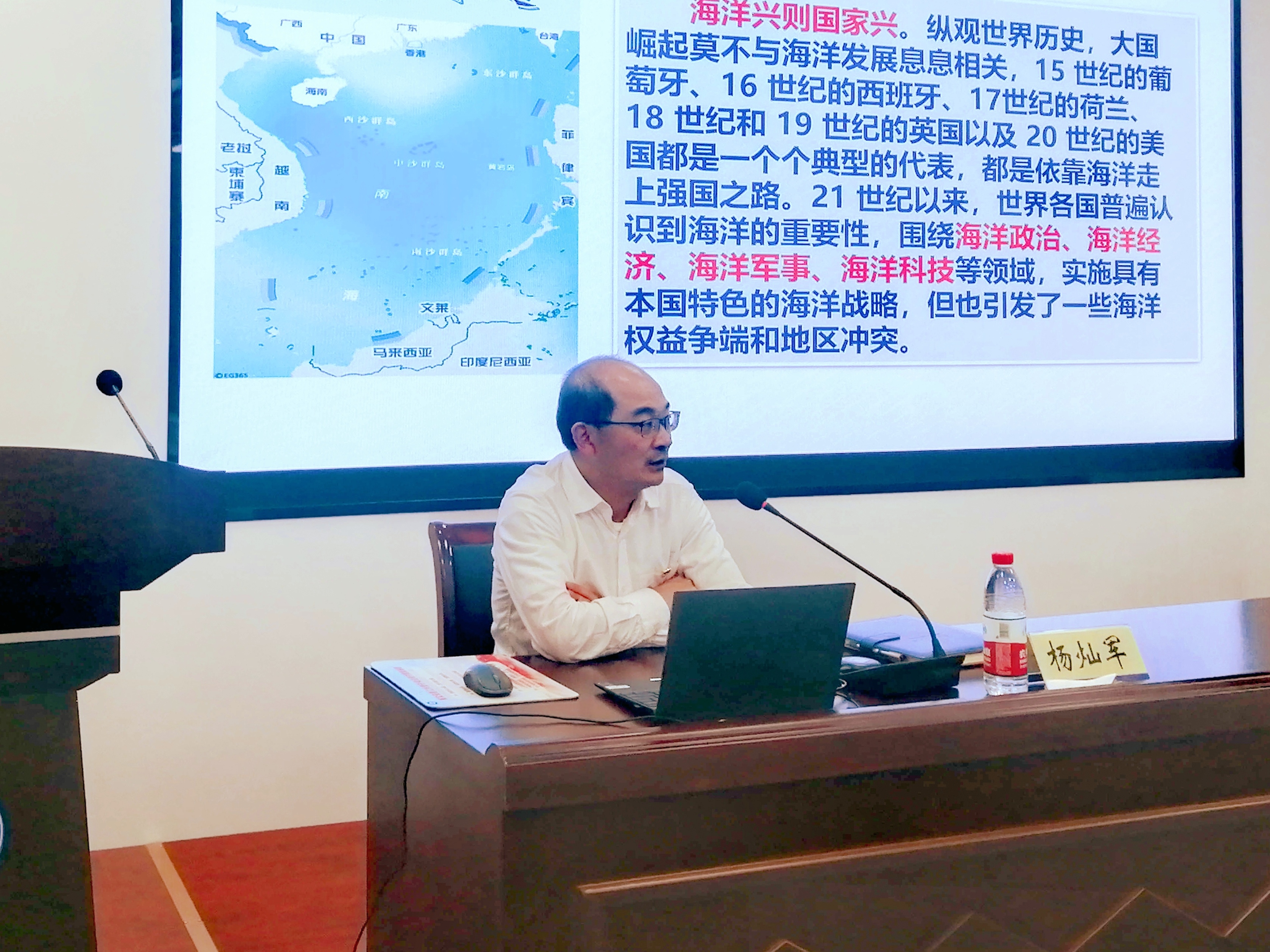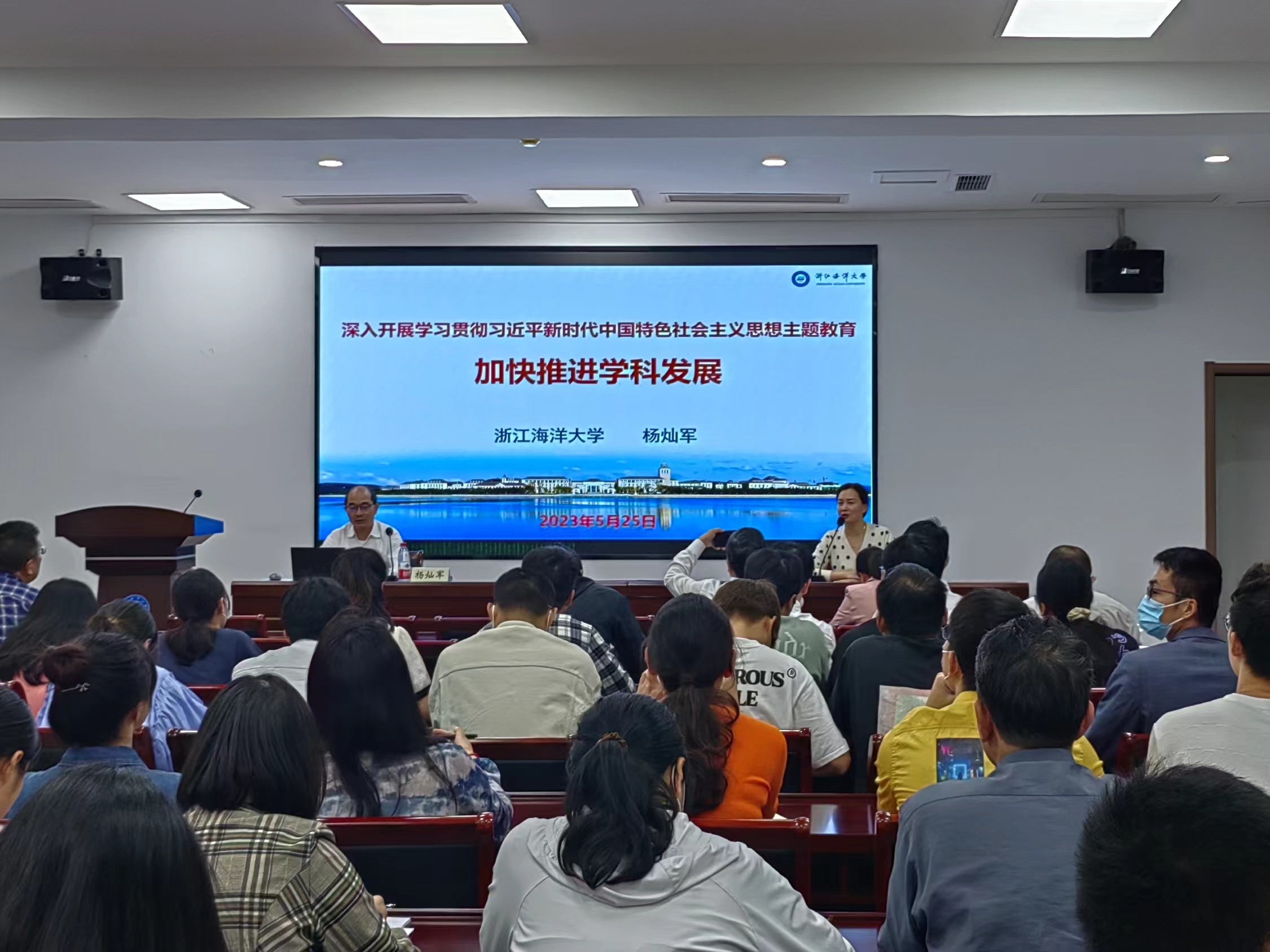 杨灿军校长的党课以“加快推进学科发展”为题,围绕主题教育的重要意义、海洋高等教育发展形势和学科建设发展举措三个方面展开。党课信息跨度大,知识覆盖面广,首先对主题教育的重要意义、总要求和根本任务进行了重申,杨校长指出开展学习贯彻习近平新时代中国特色社会主义思想主题教育应该与建设海洋高等教育强国相结合,与“中国式海洋现代化”建设相结合,与建设特色鲜明、国内一流的海洋大学相结合,充分发挥教育、科技、人才的战略支撑作用,在助力海洋强国战略实施、我省“两个先行”和舟山现代海洋城市建设的新征程上,贡献海大智慧,展现海大担当,彰显海大作为。