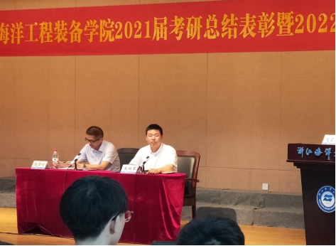 2021届考研总结表彰暨2022届考研动员大会在杨存国二号报告厅顺利举行。学院院长赵西增教授出席会议并作动员讲话。学院分团委副书记刘芷含、辅导员郝光、王旭晨、A17港航2班班主任霍中艳等、2017级考研成功的优秀学子和2018、2019级学生代表近150人参加大会。大会由学院党委副书记朱柏军主持。