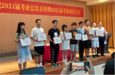 接着由工作人员宣读2021届考研升学表彰名单,在激扬的颁奖音乐声中,与会嘉宾和领导为“考研先进个人”、“考研学霸寝室”和“考研先进班级”颁发荣誉证书和牌匾。