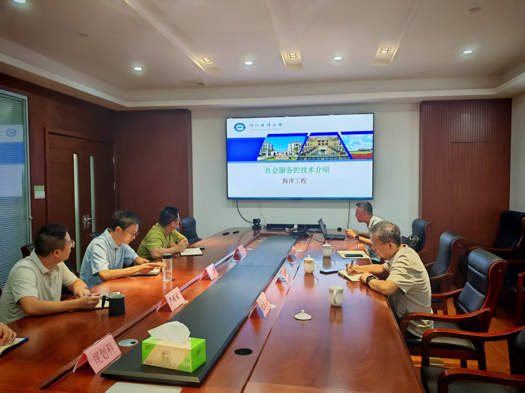 座谈会上,海工学院沈良朵老师汇报了学院在海洋工程方面的社会服务情况,重点介绍了人工智能方面的应用。刘贤主任介绍了测绘设计中心在海洋测绘、自然资源调查监测方面的技术优势,表示中心正在积极探索人工智能技术方面的应用,希望同学校更好的开展产学研用的合作。