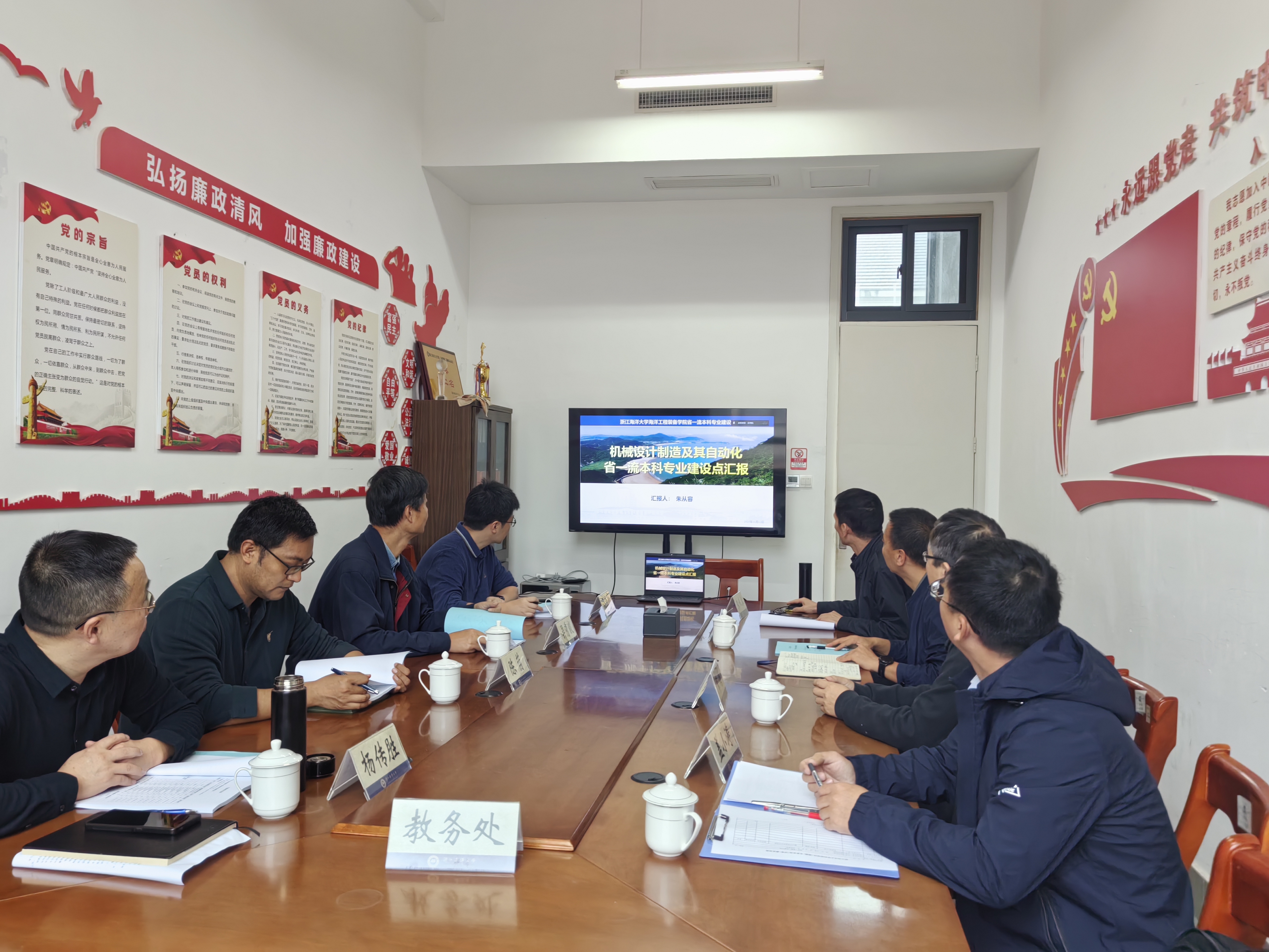 11月12日下午,机械设计制造及其自动化省级一流本科专业建设点验收工作评审会在工科楼227会议室召开。浙江理工大学胡明教授、浙江大学司玉林副教授、浙江龙文精密设备有限公司吴秀毅高级工程师、浙江海洋大学陈荫教授、杨传胜副教授组成的专家组对机械设计制造及其自动化省级一流本科专业建设点进行了验收评审,专家组听取了专业建设成效汇报,审阅和评议了自查报告及相关支撑材料。
