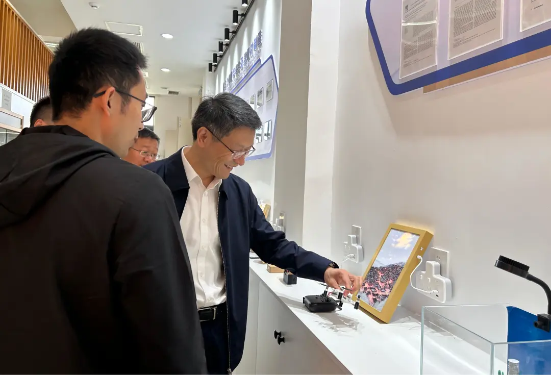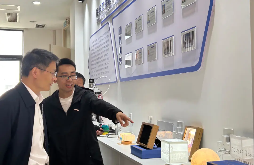 团队成员石学智博士首先向武传宇校长详细介绍了“海洋工程数字孪生及其增材制造”实验室研究方向、技术进展及建设成效。在石博士的引领和讲解下,武传宇校长系统了解了“海洋工程增材制造及数字孪生”实验室取得的丰富成果。石博士还介绍了实验室与地方企业合作的多个项目,展示了海工学院毕业生纪念品和企业走访纪念品的设计以及机械设计学生的特色3D打印作品等。