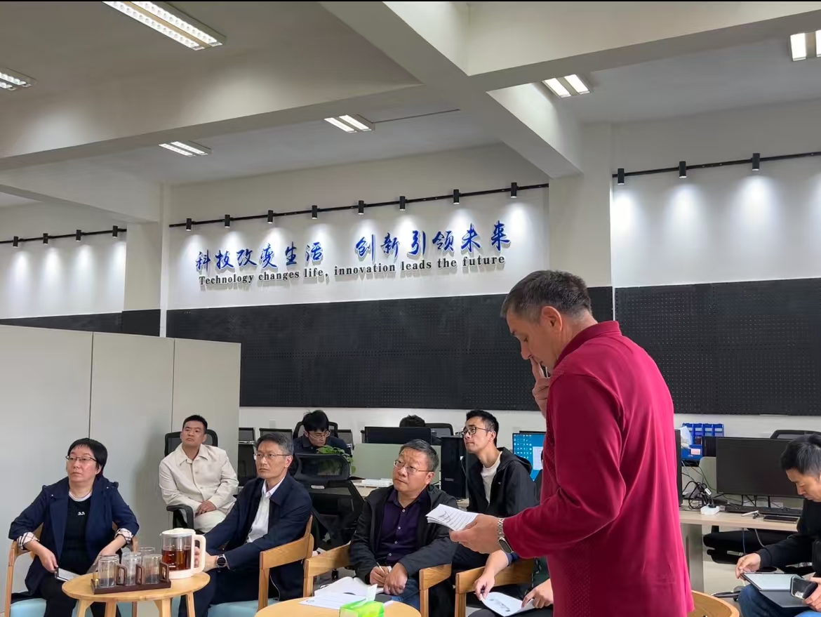 “海洋工程数字孪生及其增材制造”实验室。该实验室由Pavlenko Petro教授牵头,带领石学智、尹博、周瀚翔等一批博士共同组建,致力于将3D打印与数字孪生相结合,聚焦海洋工程领域智能化问题提供更加高效、精准的解决方案,为海洋经济的转型升级提供强有力的技术支撑。王晋宝院长和机械工程学科的骨干教师参与了本次参观与座谈。