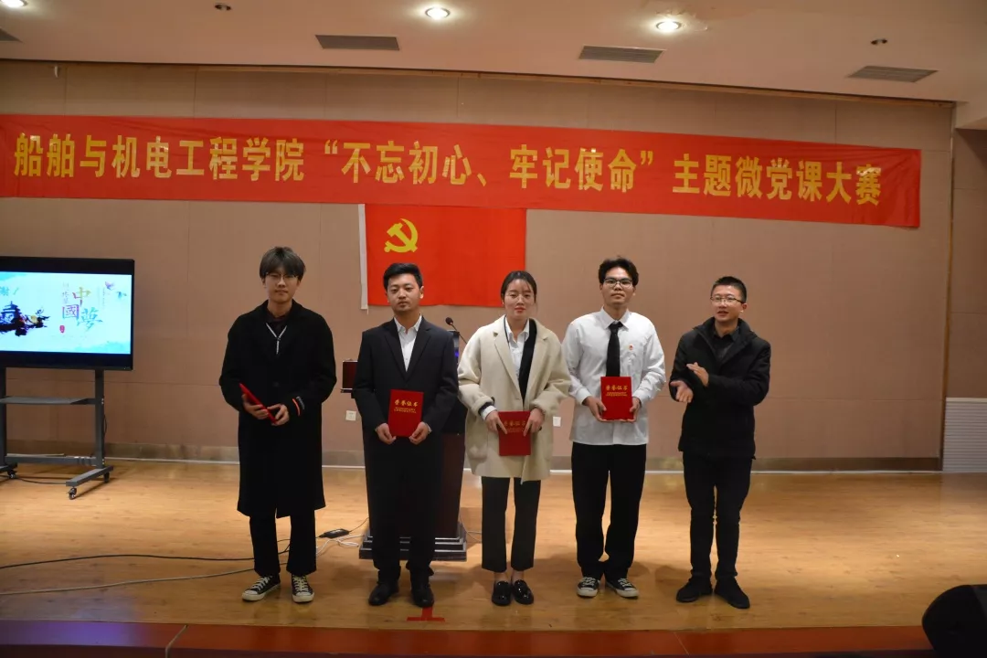 评委们根据选手授课内容、口才表达等评分标准逐一进行打分,经过激烈角逐,最终决出了一、二、三等奖及优秀奖。据了解,此次微党课比赛为船舶与机电工程学院广大优秀入党积极分子提供了一个展示自我的平台,进一步展现了当代大学生朝气蓬勃、奋发进取、积极向上的风貌,同时也体现出当代大学生需要带头“不忘初心、牢记使命”的精神。