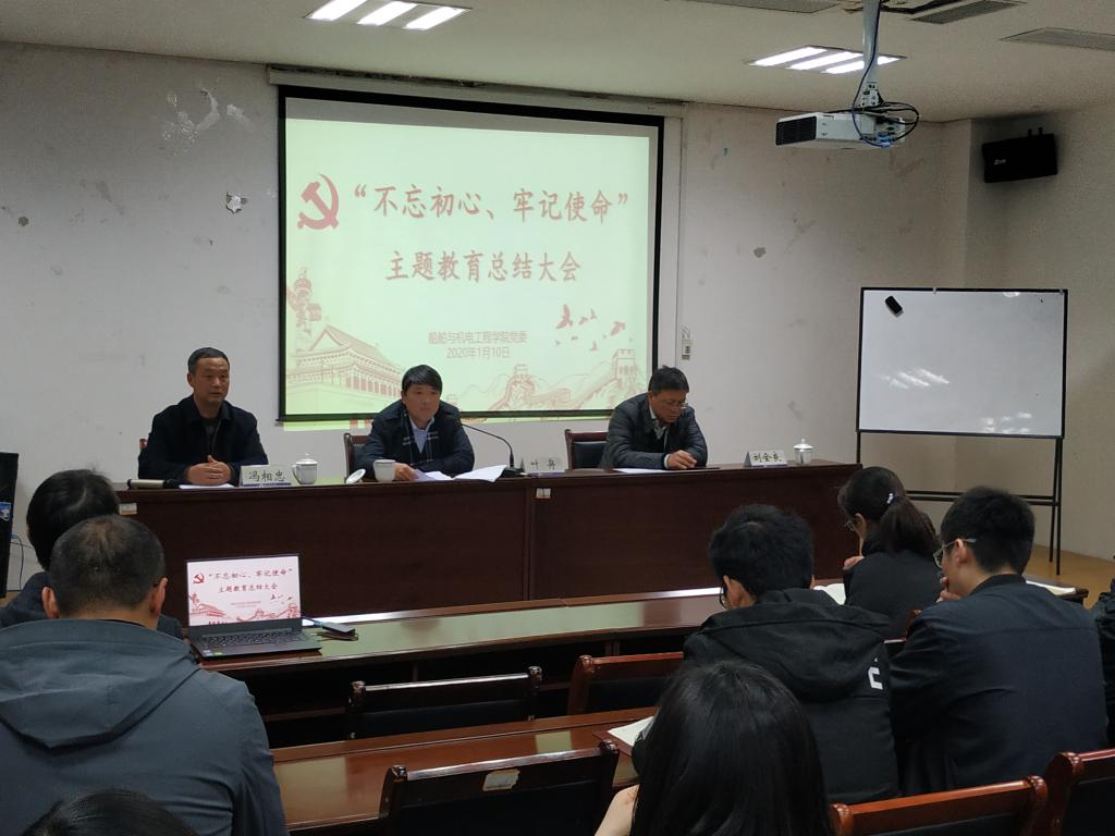 1月10日下午,船舶与机电工程学院在工科楼119会议室,召开“不忘初心、牢记使命”主题教育总结大会。学校党委副书记叶舟出席会议并讲话,船舶与机电工程学院党委书记冯相忠作总结讲话,会议由学院院长,党委副书记刘全良主持,学院全体领导干部,全体师生党员参加会议。