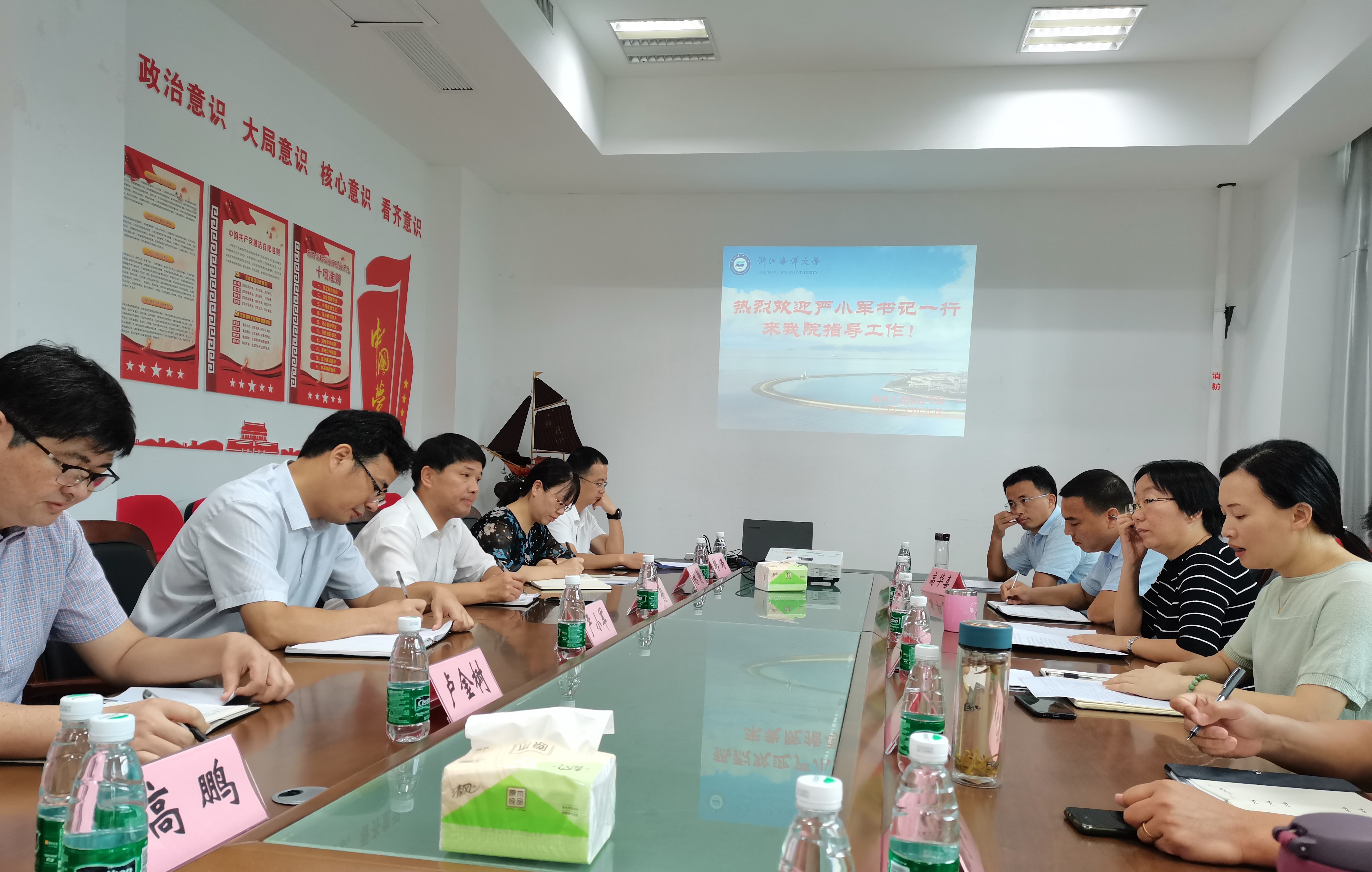 芦茜书记首先就学院组建以来的内部机构设置、工作机制建立、党建工作开展及任期重点目标分解与推进等工作向严书记一行领导作了简要汇报。各分管领导分别围绕学院学科专业、师资与人才培养及平台基础条件等现状作了汇报,提出了存在问题与下一步工作举措,同时就学科与研究生教育、高层次人才引进、创新团队与实验室培育等内涵建设与相关职能部门进行了深入交流。