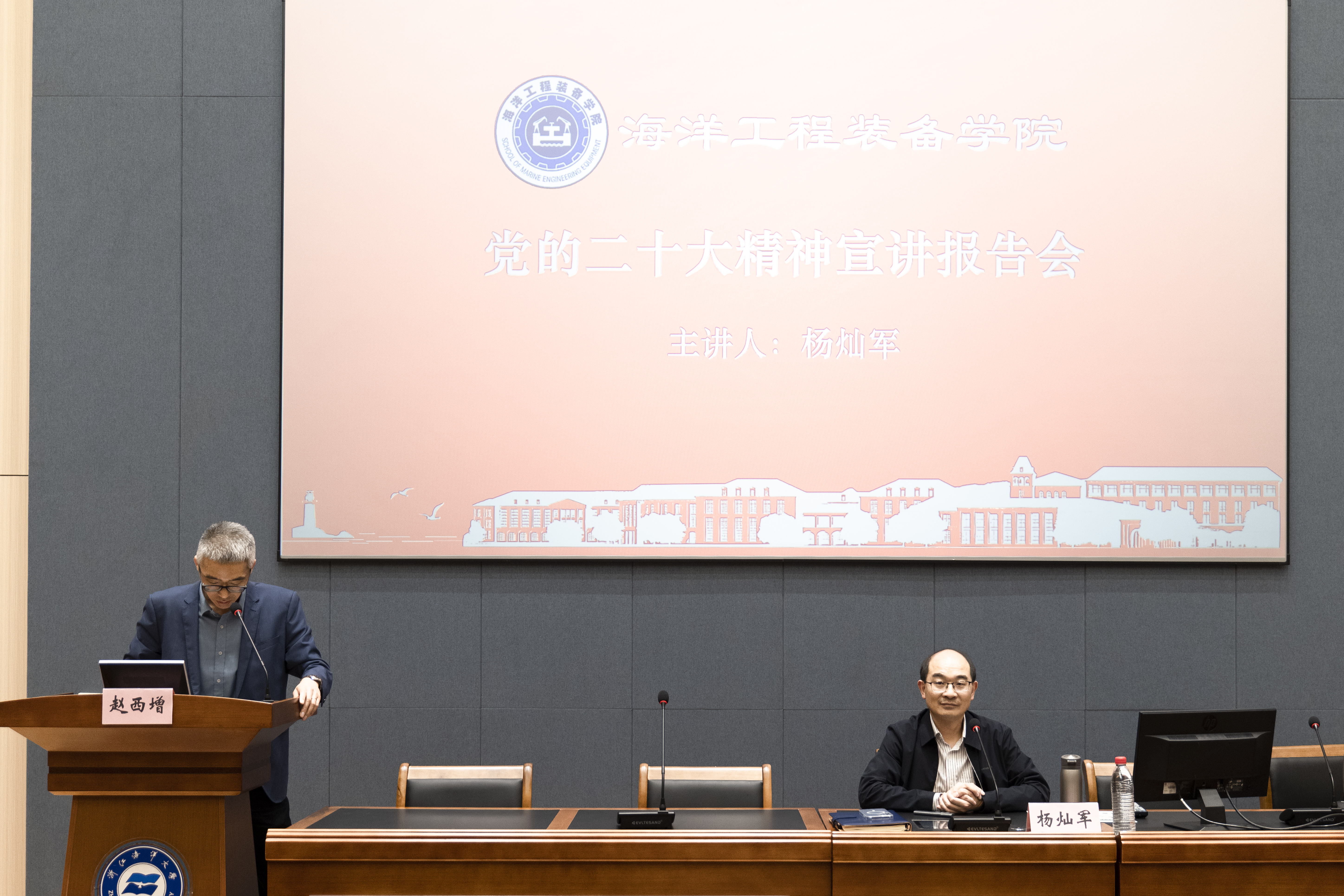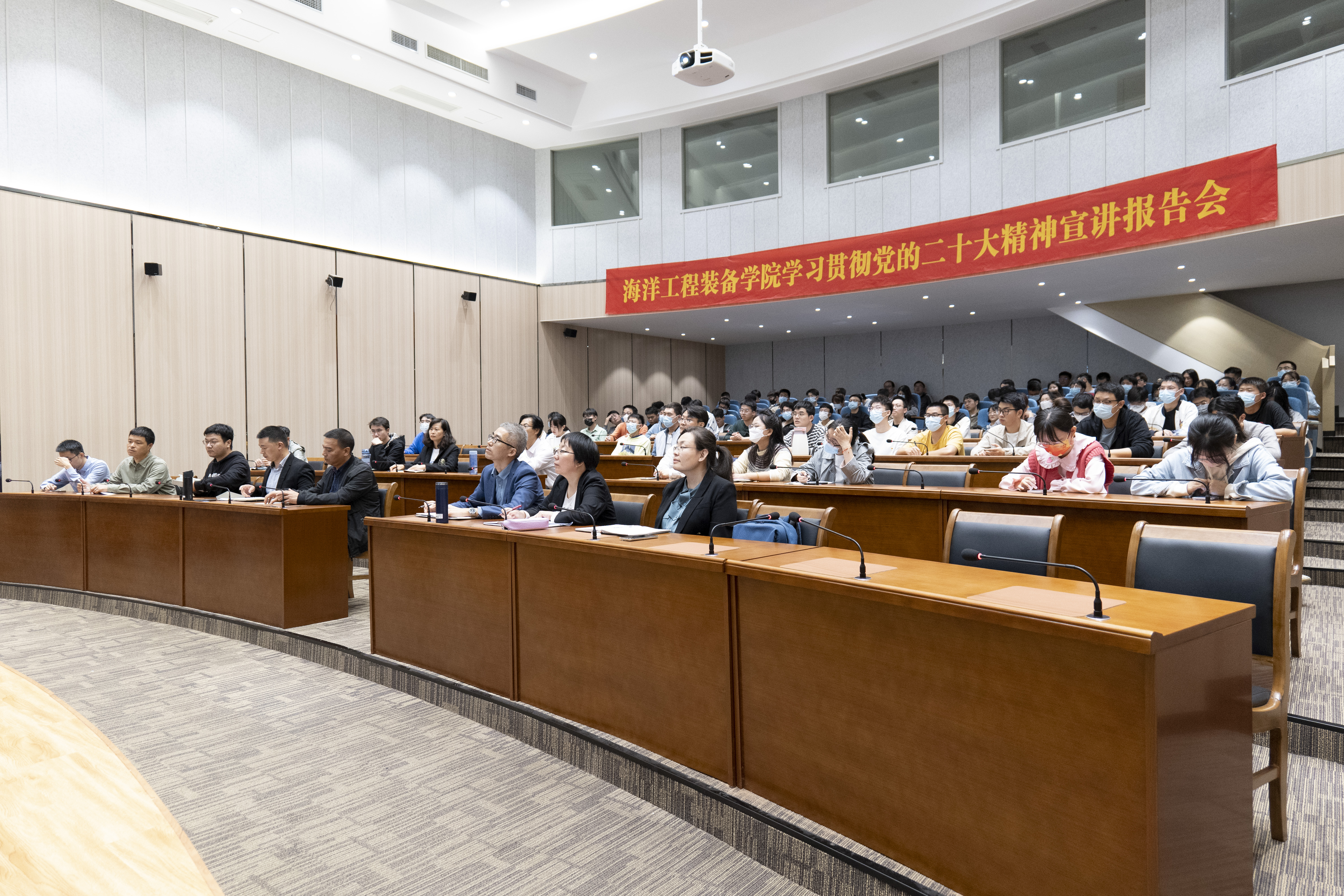 师生作《胸怀天下 守正创新——党的二十大精神宣讲报告》。海工学院赵西增院长主持了本次报告会。