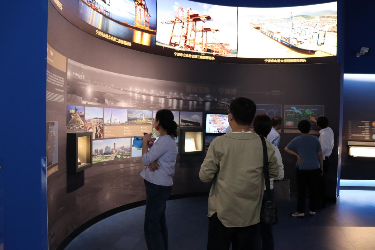 在芦茜书记的带领下,师生党员还走访了位于宁波北仑的中国港口博物馆。港口博物馆造型独特,以海螺和风帆为灵感,寓意“港通天下”和“扬帆起航”。港口联通水陆,特殊的区位和特殊的作为决定了港口在人类社会发展中的重要地位,“海洋强国”、“一带一路”等重要战略都有港口浓墨重彩的一笔,同时也与第一会所